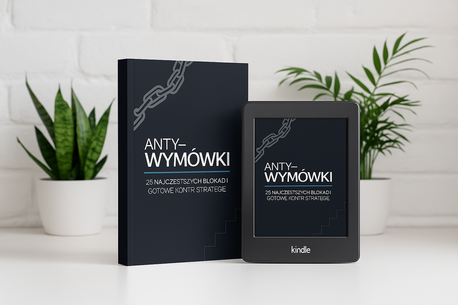 Bo najczęściej nie przegrywasz z brakiem wiedzy. Przegrywasz z wymówką, która brzmi rozsądnie: „nie mam czasu”, „zacznę od poniedziałku”, „muszę się jeszcze przygotować”. Ten e-book pomaga rozbroić te blokady szybko i wrócić na tor.
